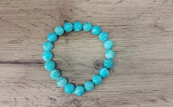 Avec ses reflets vert-bleu doux et apaisants, ce bracelet en amazonite du Brésil séduit autant par sa beauté naturelle que par ses vertus énergétiques. Confectionné en perles de 10 mm, il apporte élégance et sérénité à celui ou celle qui le porte.
